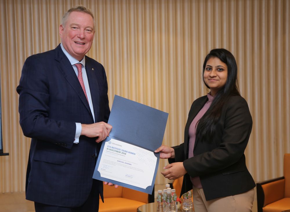 CFA Institute Young Women in Investment Class of 2018 were awarded their ‘certificate of merit’ at a workshop on 30 January 2019 in Mumbai in the presence of Heather Brilliant, CFA, chair, Board of Governors, and Paul Smith, CFA, president and CEO, CFA Institute, among others.